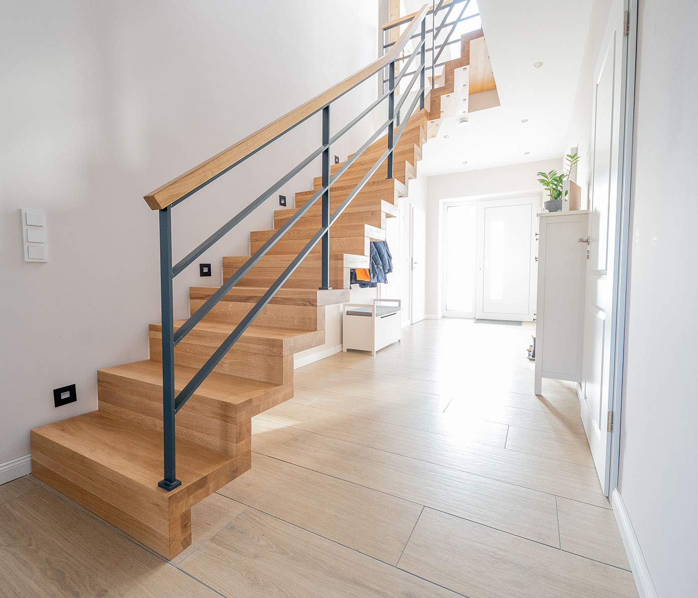Klassischer Aufbau, variabel und wohnraumgestaltend, dafür steht die klassische Wangentreppe.